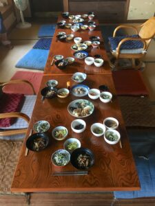 6. What type of food? Can you cater for special diets?: Simple vegetarian food catered to special diets. We have a lovely Japanese cook for the sesshin. The sightseeing portion of the trip will entail eating at different places. People generally find that they have plenty of options. During our group meals the restaurants cater to special diets as well.